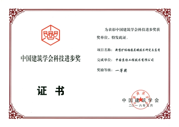 新型擴體錨固關鍵技術研究與應用-2015年中國建筑學會科技進步獎(單位)
