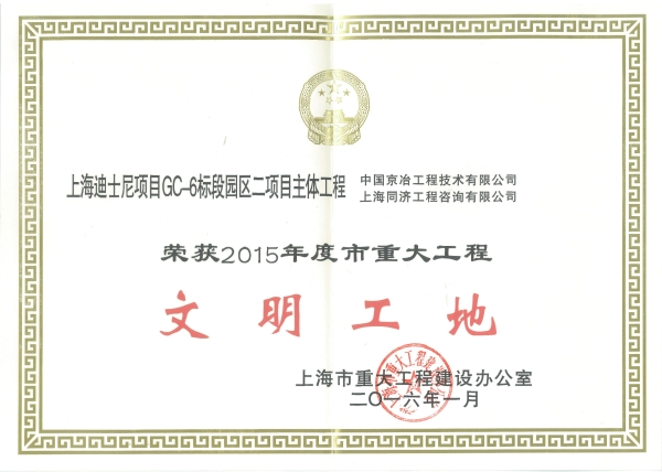 2015年度市重大工程文明工地
